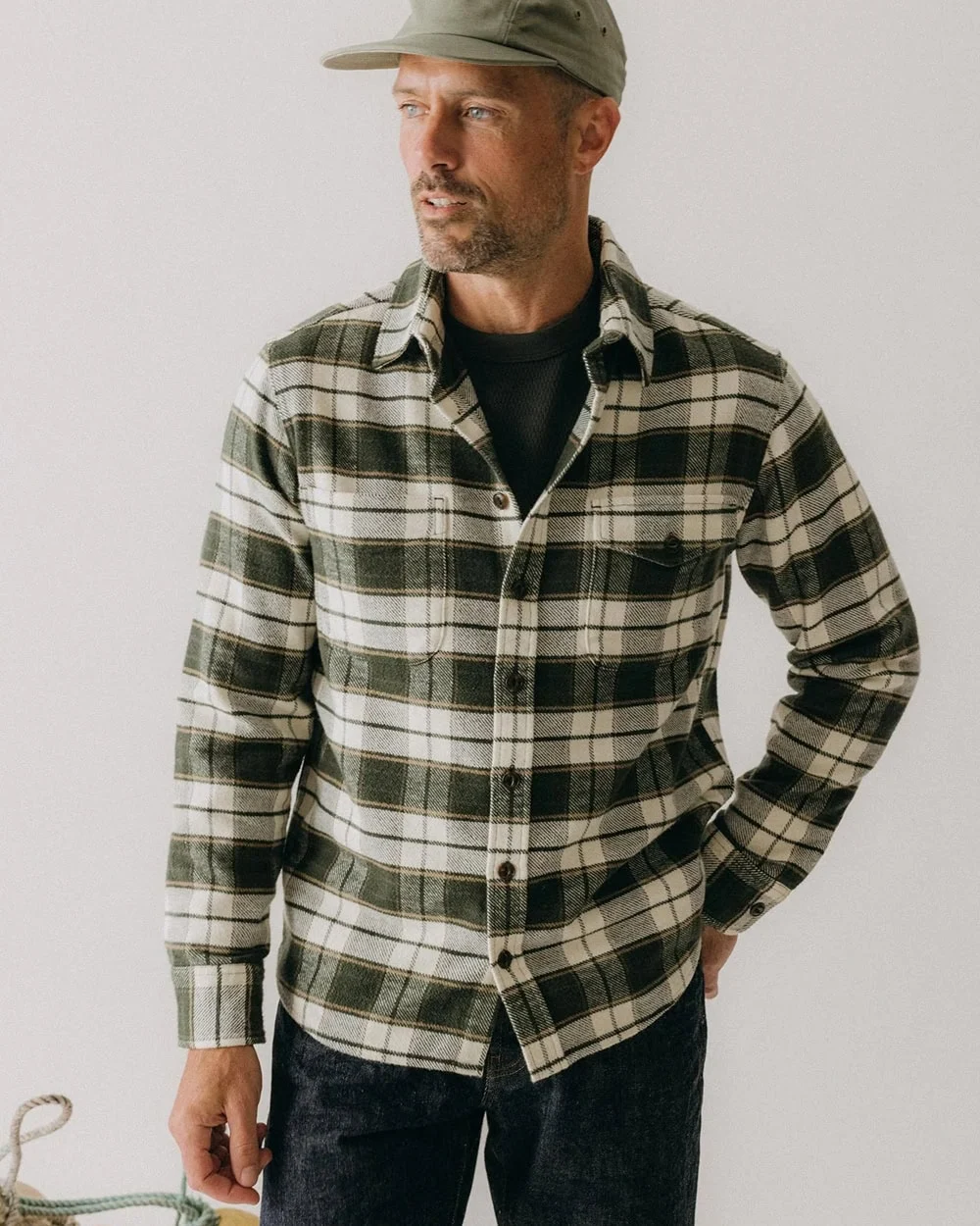 A perfect layering companion, this heavy-duty work shirt pairs well with other workwear-inspired pieces like carpenter pants, moc-toe boots, and a barn coat or parka, depending on the temperature. If you’re feeling bold, you could even try the full Canadian tuxedo look by combining it with a pair of raw-denim jeans.
