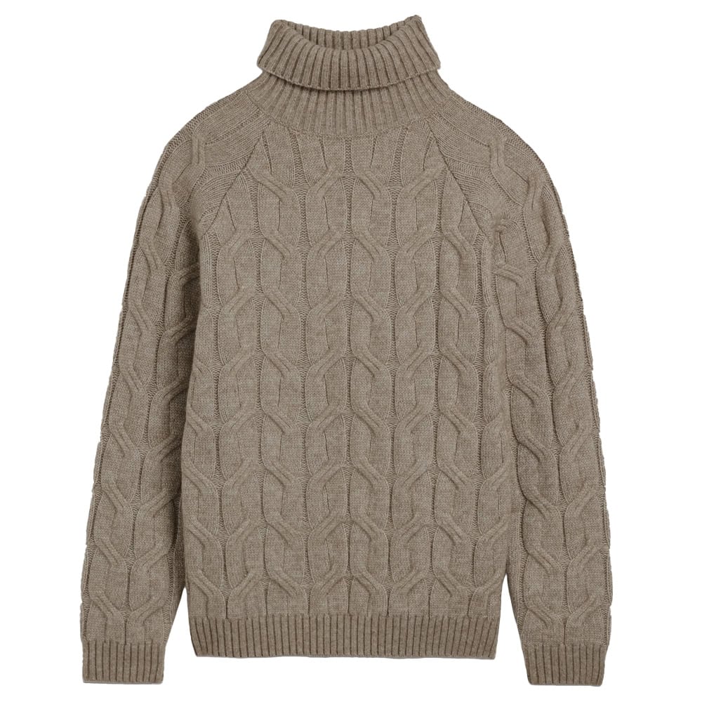 - Moss Taupe Cable Roll Neck Jumper