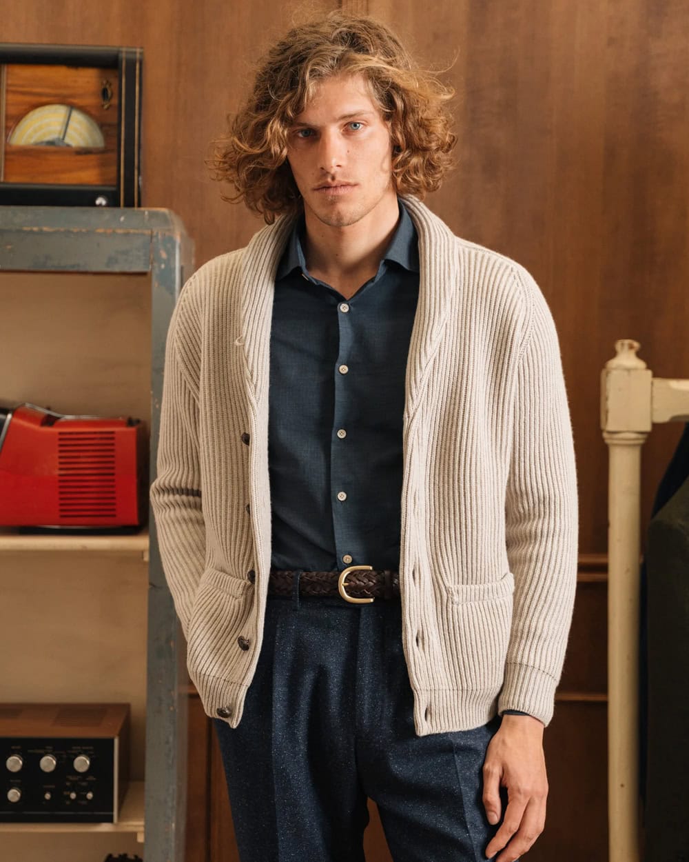 The shawl-collar sweater is another great layering piece that sits well over a T-shirt, button-up or even a roll neck thanks to its unique wraparound collar. These sweaters are more often than not chunky, textured and sometimes come in cardigan form rather than a pullover.