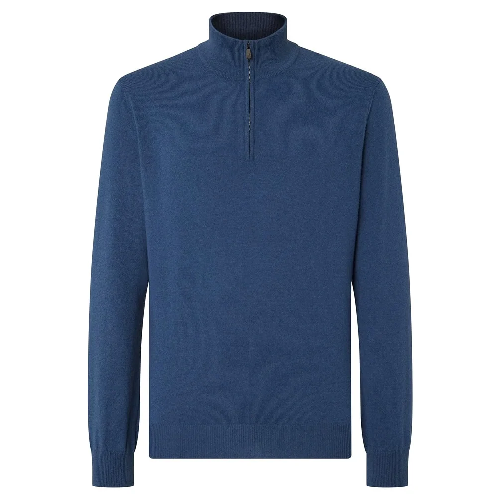 - Corneliani Melange Sugar Paper Blue Wool and Cashmere Zip Jumper