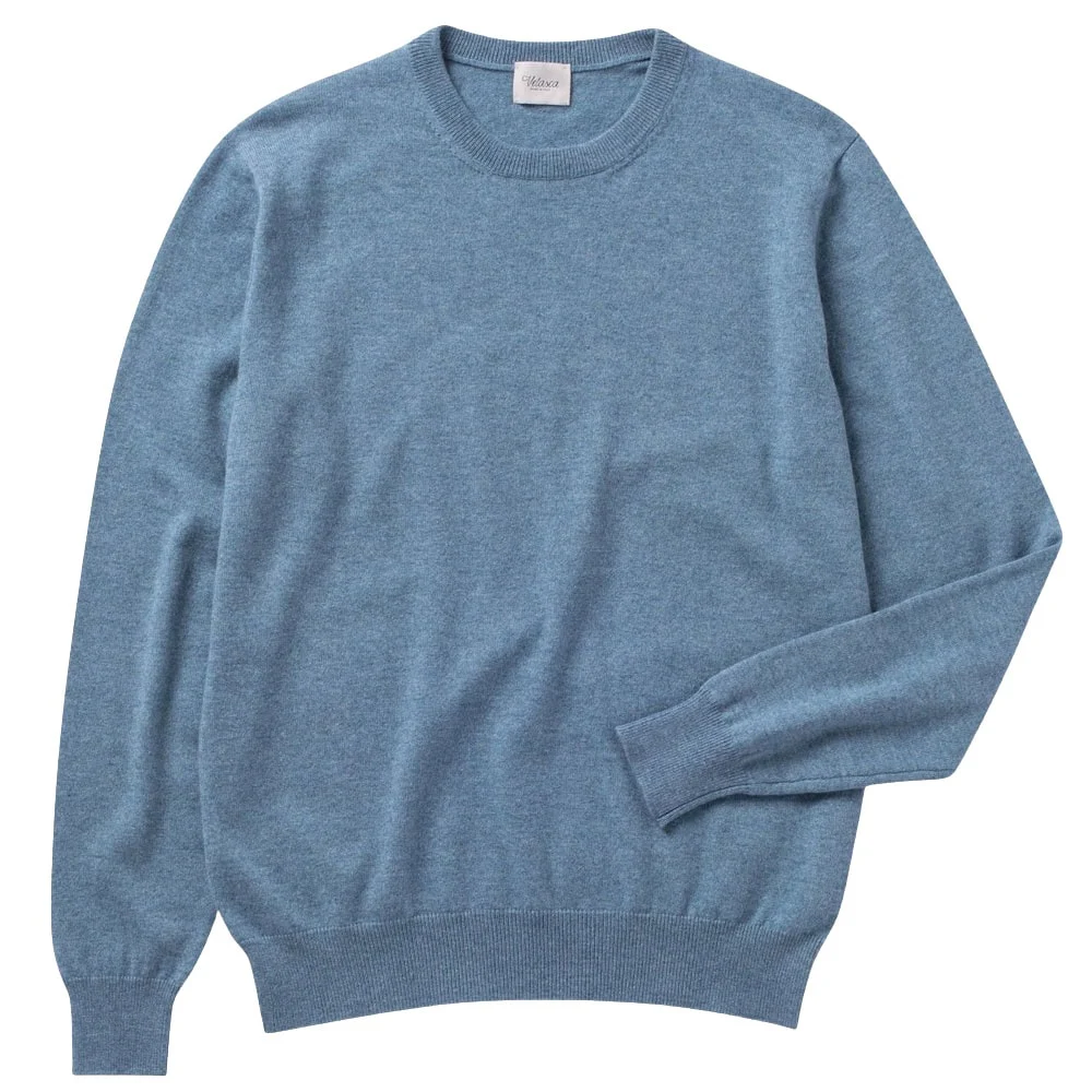 When you think ‘sweater’, this is probably the garment that first comes to mind. It’s a simple pullover with a round neckline, long sleeves and it’s usually ribbed at the cuffs and hem. There are lots of different variations of this style, ranging from chunky fisherman knits with raised patterns to low-profile fine-gauge options that are ideal for layering up.