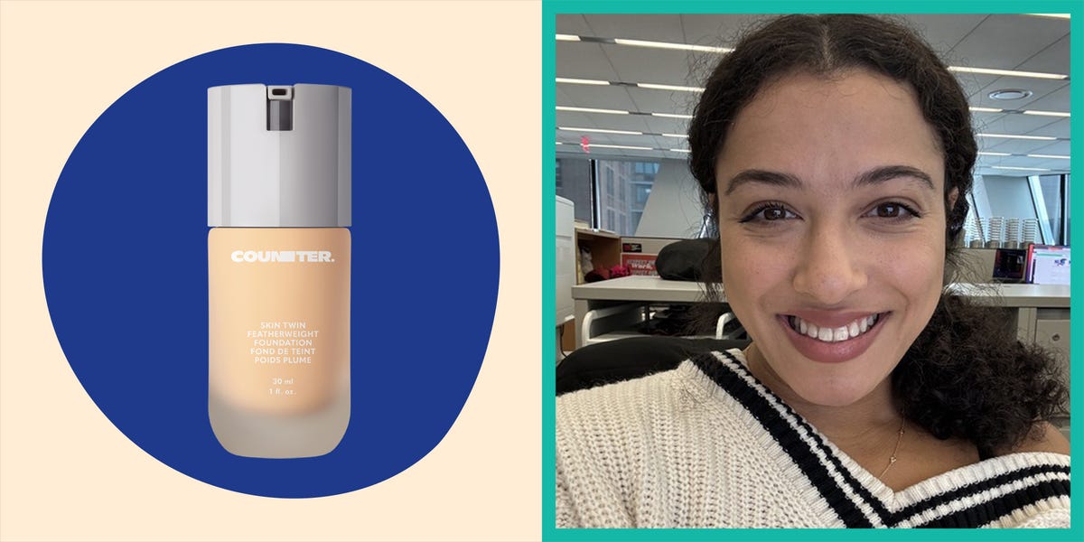 Writer, Katie Mogg, before and after applying the Counter Skin Twin Featherweight Foundation. The product evened out her skin tone without completely concealing her freckles.
