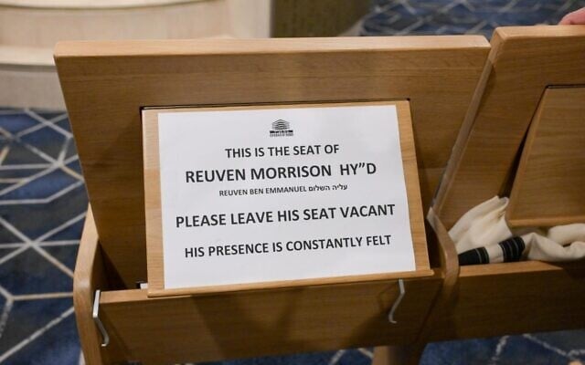 While the memorial hall was full, reserved seats for three victims—Reuven Morrison, Tibor Weitzen, and Alex Kleytmann—remained empty as a poignant reminder of their absence.