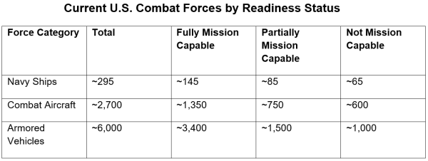 While the total inventory of military assets is concerning, the state of readiness is even more troubling. Across naval, air, and ground forces, only about half of the available units are fully mission-capable at any time. The remainder are either partially capable or non-deployable due to maintenance backlogs, parts shortages, or delayed repairs. Consequently, the effective operational strength of the U.S. military is significantly less than its reported total capacity.