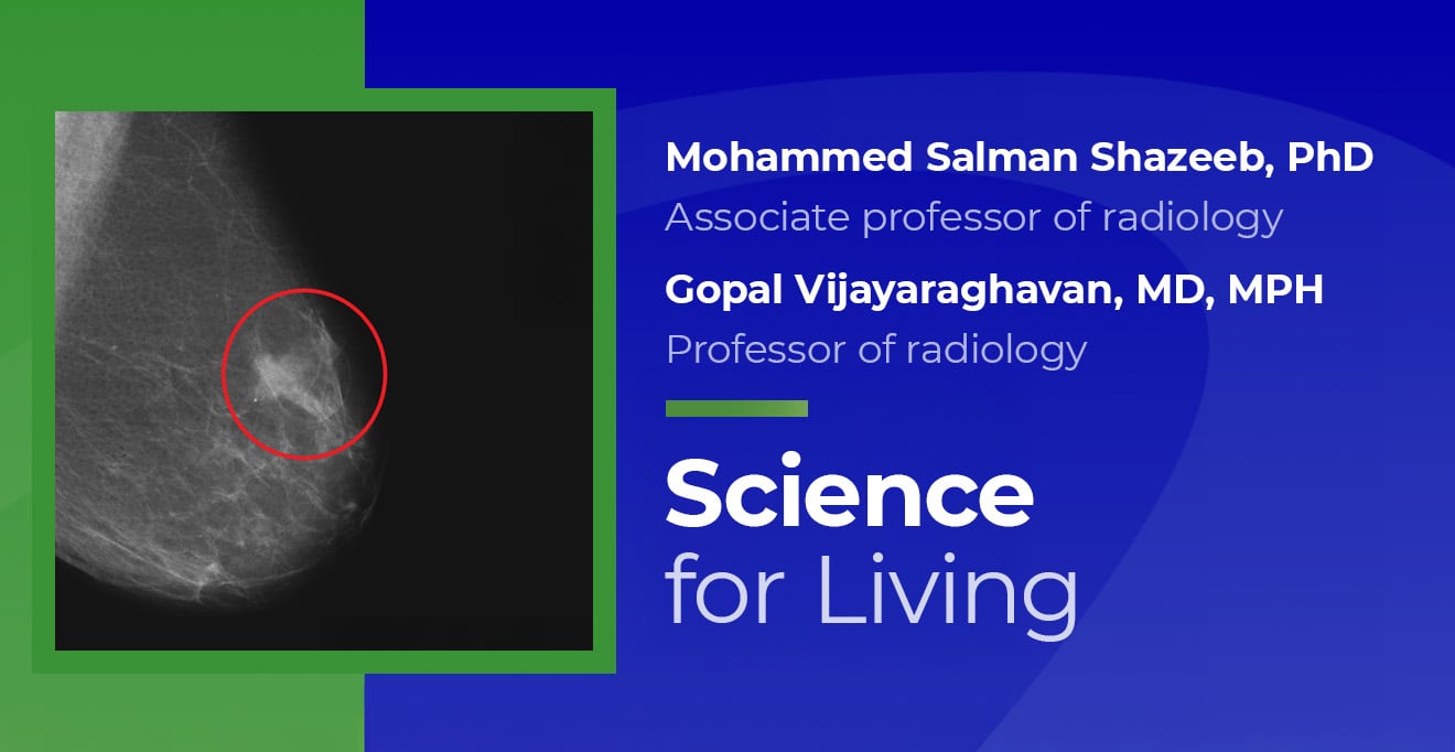 Dr. Mohammed Salman Shazeeb, an associate professor of radiology, alongside Dr. Gopal Vijayaraghavan, professor of radiology, is part of a team evaluating an AI-based risk assessment model. This model was developed in partnership with researchers from the Massachusetts Institute of Technology. Funded by grants from state agencies and the Breast Cancer Research Foundation, the tool analyzes routine screening mammograms and generates a risk score that estimates a woman’s likelihood of developing breast cancer over the next several years.
