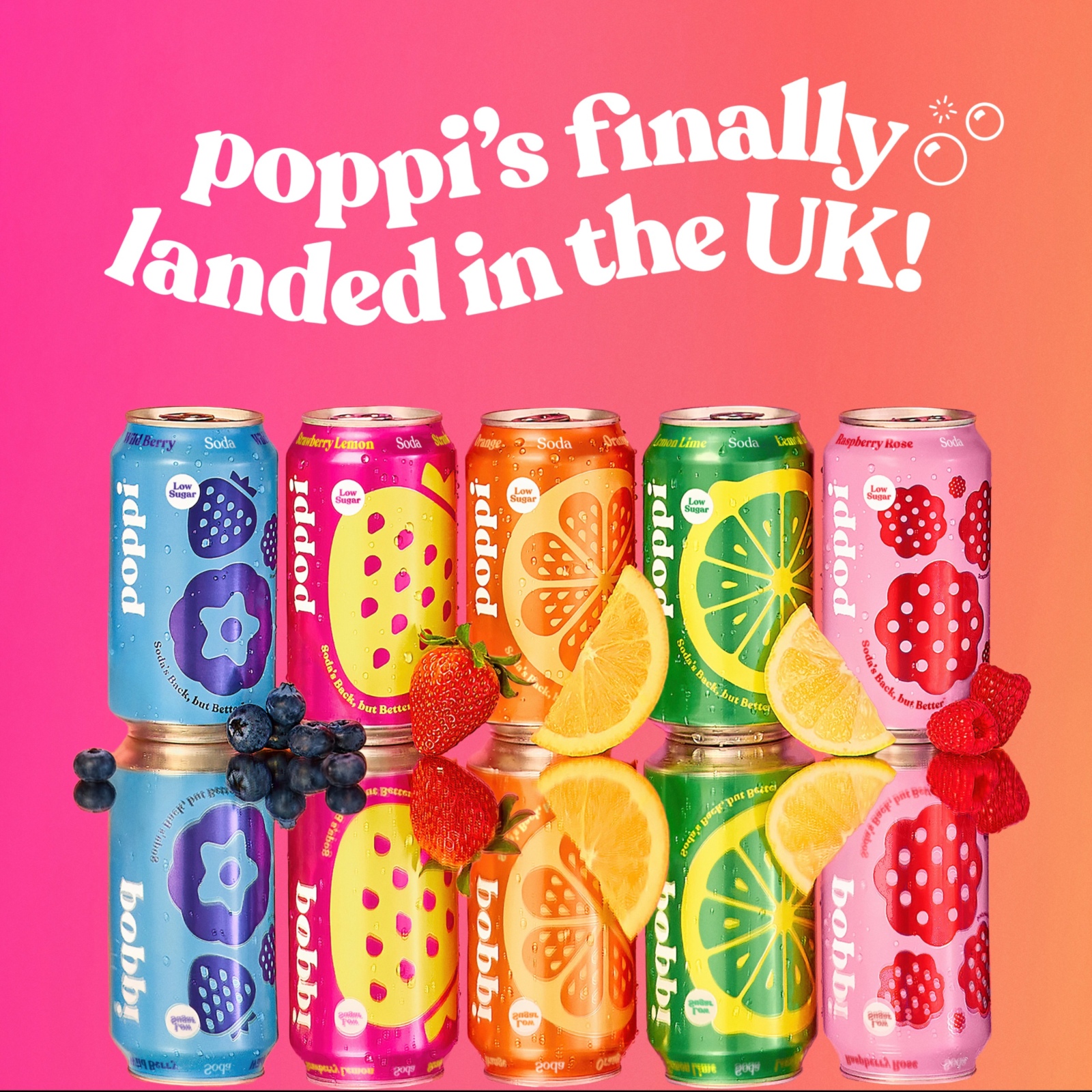 poppi will debut in 330ml cans, available individually and in four-packs featuring all five exciting flavors: Strawberry Lemon, Orange, Raspberry Rose, Lemon Lime, and Wild Berry. The official UK launch is scheduled for March 5, with availability in Tesco and Pret nationwide, before expanding to additional outlets later in the year.