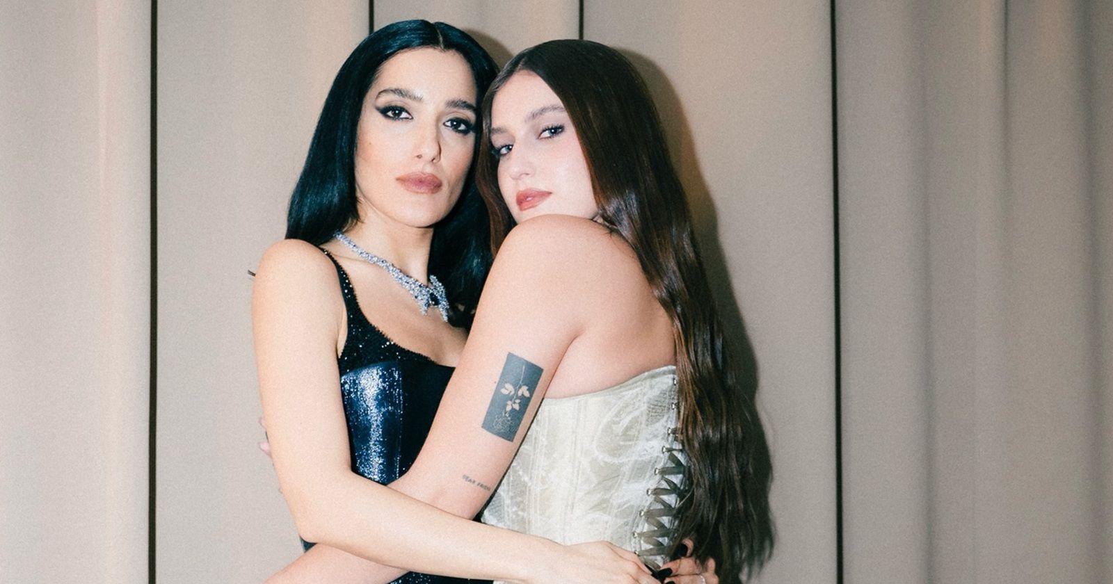 Look: Levante stunned in a custom Armani jumpsuit that combined modern sensibilities with classic elegance. Her chic cat-eye makeup completed a striking look that left a lasting impression, complemented by Gaia’s attire, which featured luminous flares and bold statements.
