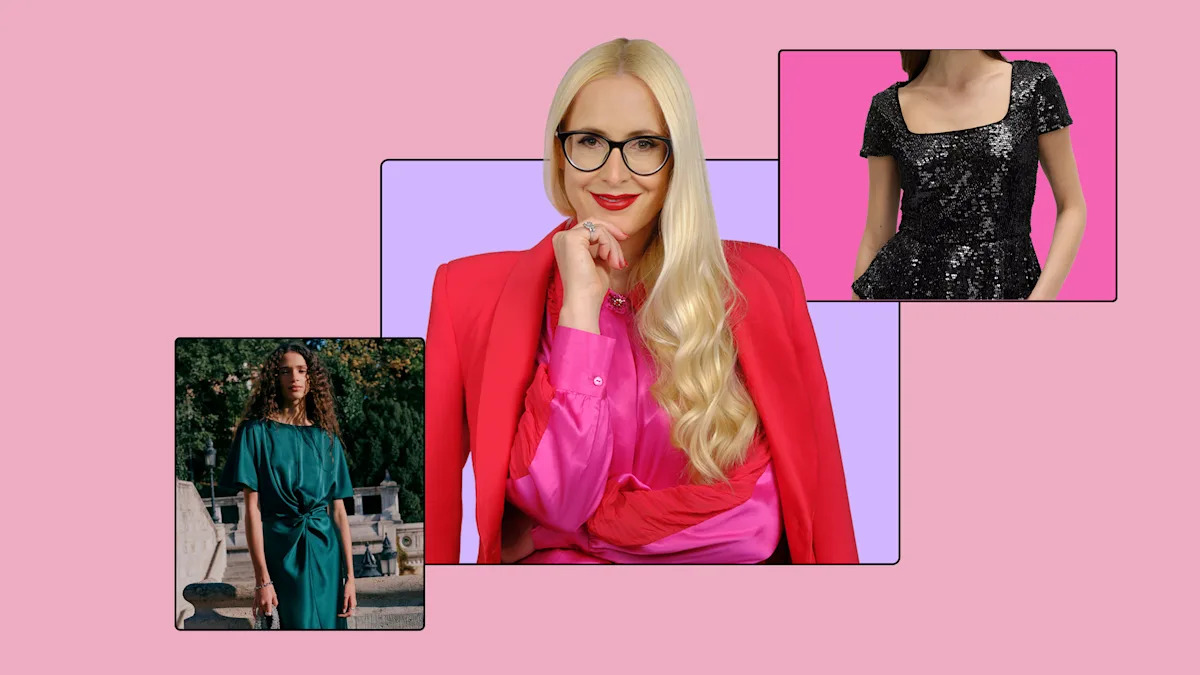 - Fabrics: Favor velvet or sequins over satin for a flattering look.
