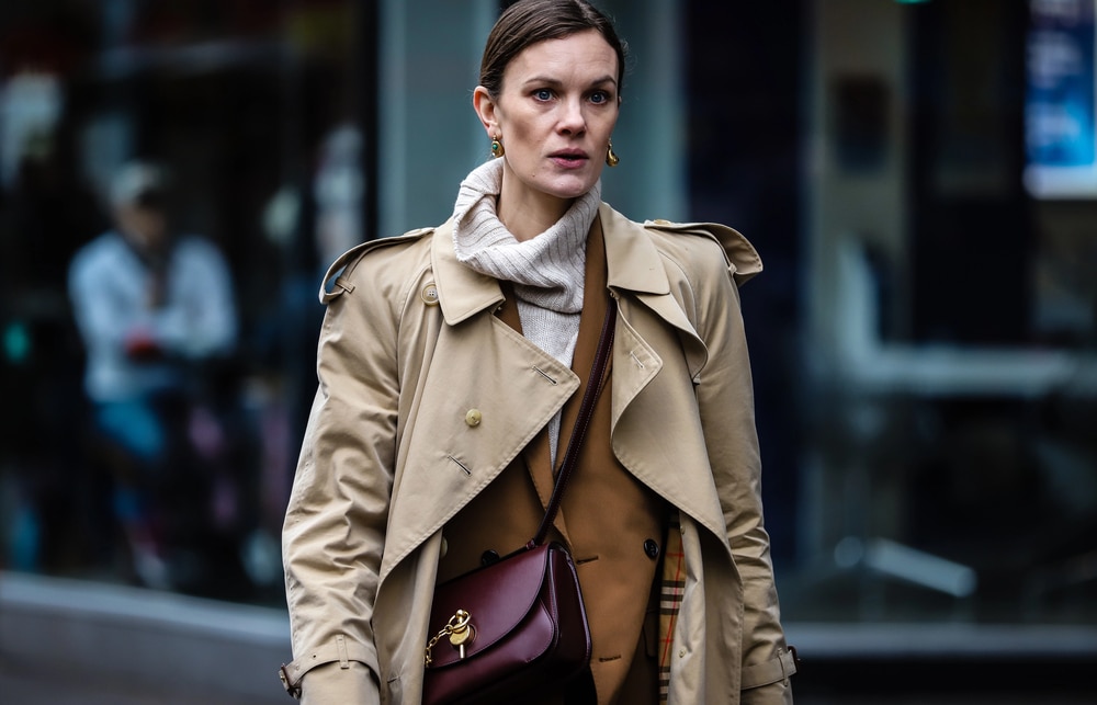 A belted taupe suit paired with a chocolate turtleneck gives off a fiercely professional vibe. Accessorize with pointed heels for an unforgettable finish.