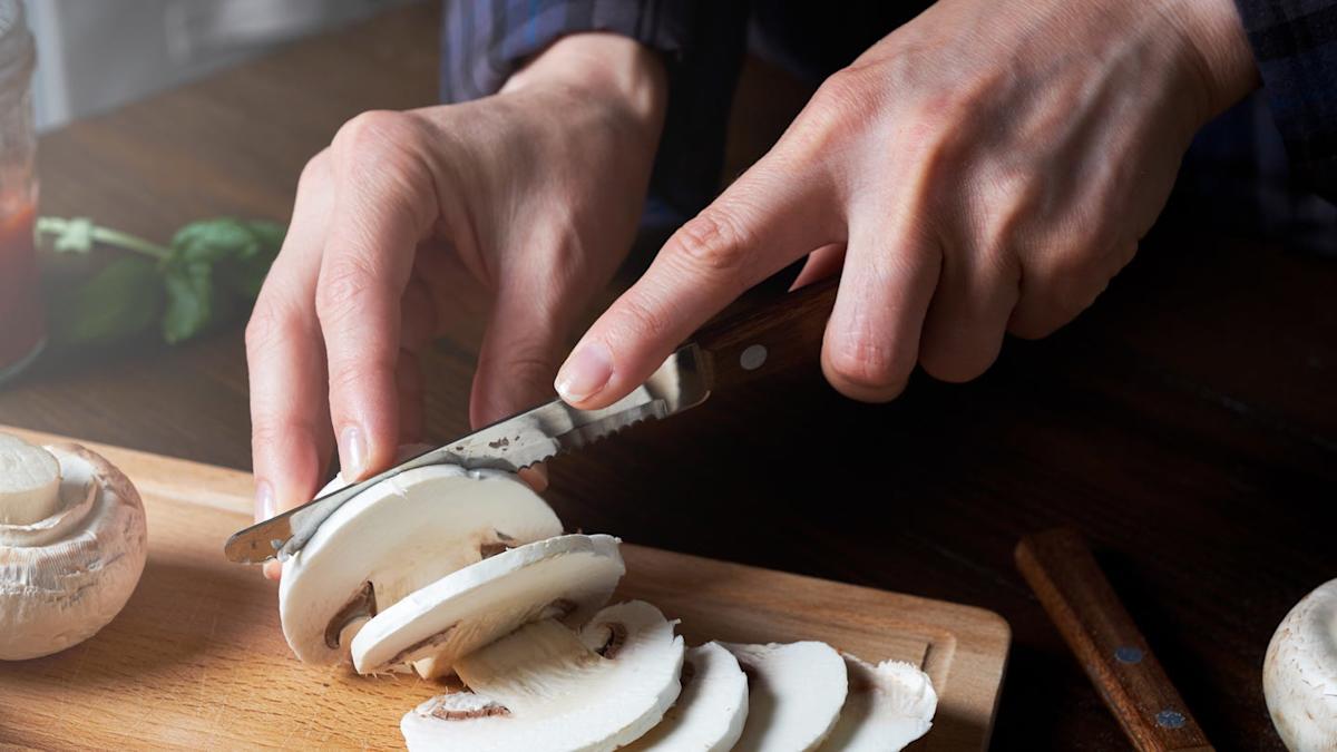 woman cutting mushrooms