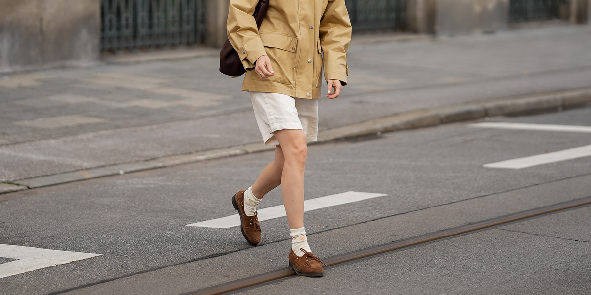 Longline Shorts and Statement Jacket: Make longline shorts work for fall by pairing them with loafers and a stylish jacket.