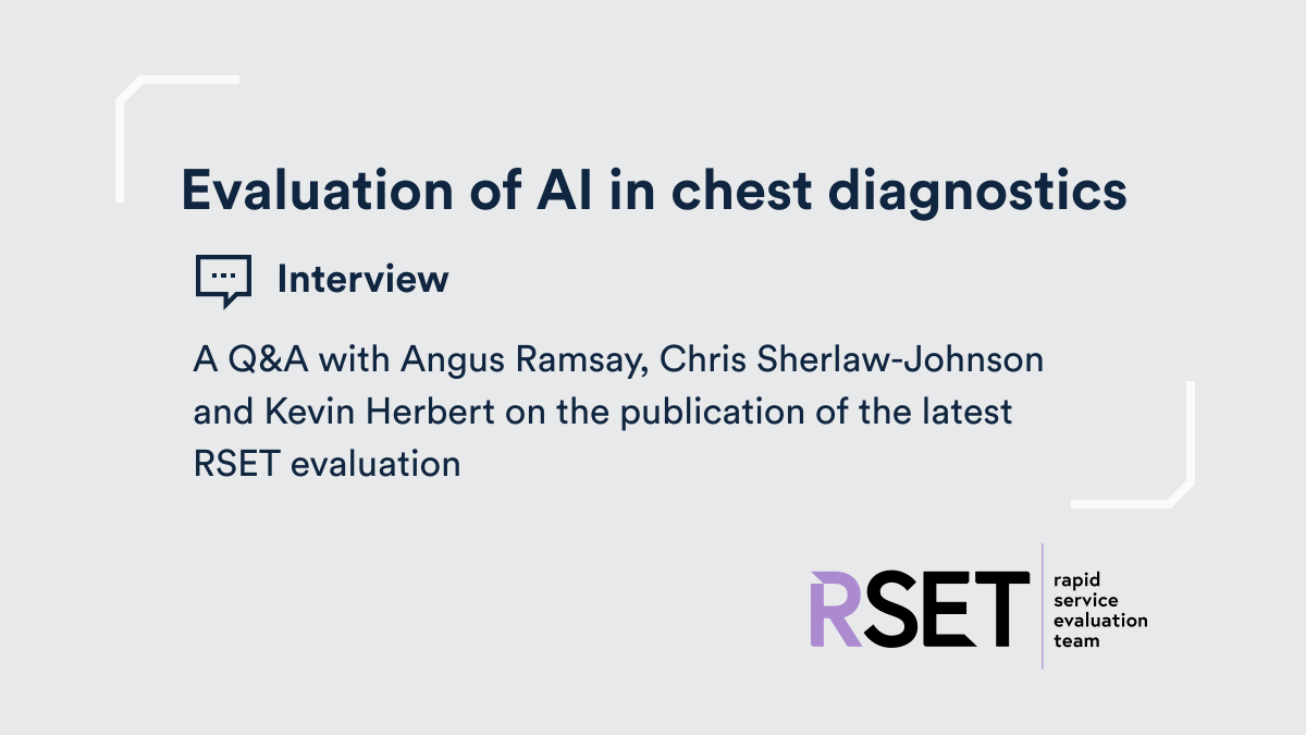 RSET was tasked with evaluating the AI Diagnostic Fund, a significant NHS England initiative aimed at integrating AI tools into chest diagnostics across approximately half of the NHS trusts in England. This presented a valuable opportunity for us to bridge existing knowledge gaps. We approached the project in two phases. The initial phase examined the evidence surrounding AI in radiology diagnostics, combined with a mixed-methods empirical study focused on the procurement and preparation for deployment of AI tools.