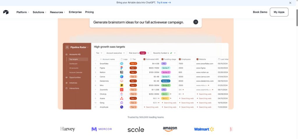 Have you ever wondered how some people create polished apps in a flash? Airtable could be your answer. The platform claims you can “build custom AI apps in minutes, not weeks.” With its ability to handle millions of records, your venture can effortlessly scale during peak times.