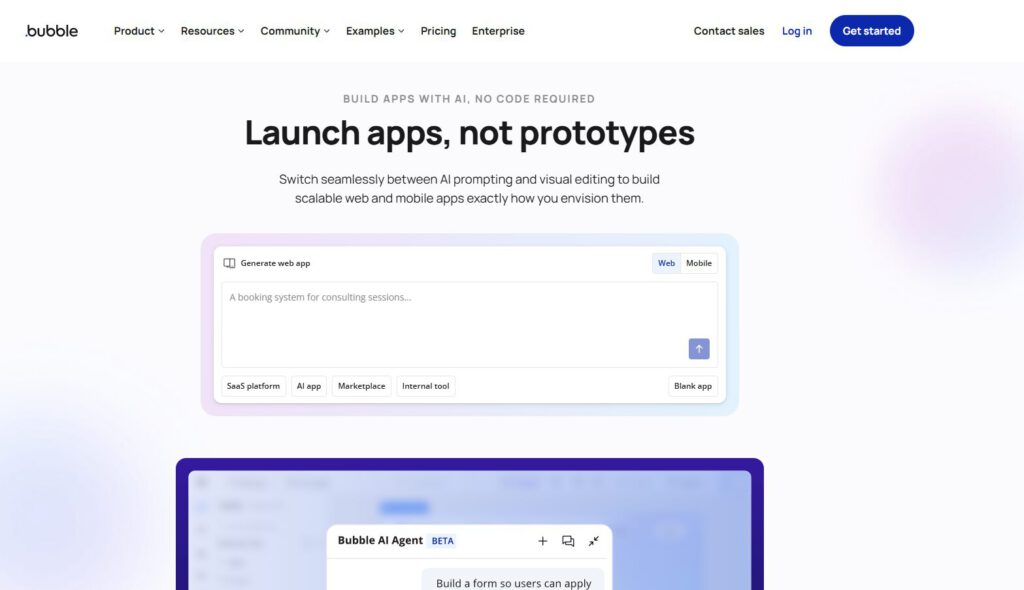 Bubble enables the creation of complex web applications without any coding. It’s essentially a toolkit for building your software dreams, allowing you to piece together databases, workflows, and user interfaces easily. The platform puts app development into the hands of small businesses and startups.