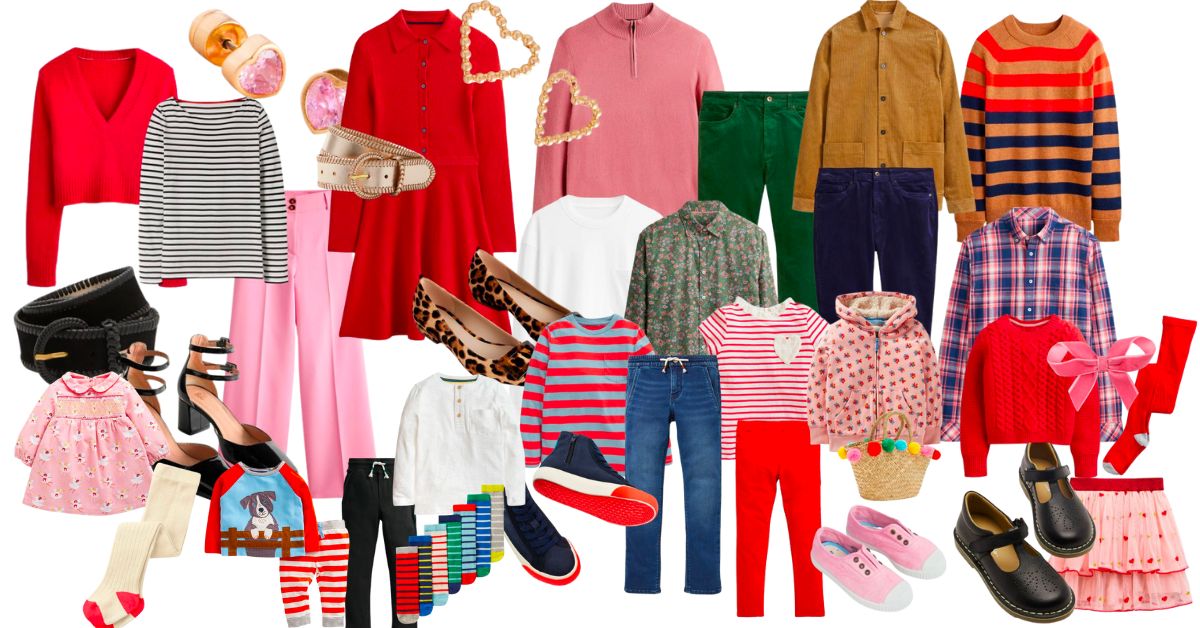When it comes to vibrant family outfits, Boden is our go-to brand. Known for its playful designs and classic silhouettes, Boden’s Mini Boden line offers adorable prints for kids, while adult sizes are equally stylish and perfect for mix-and-match.